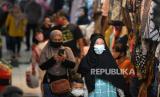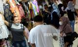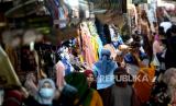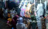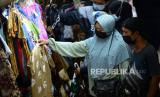 Warga berbelanja pakaian di los pakaian Pasar Beringharjo, Yogyakarta, Ahad (9/5). Memasuki H-4 Idul Fitri warga mulai menyerbu Pasar Beringharjo untuk membeli pakaian. Namun, efek adanya larangan mudik sangat memengaruhi penjualan pakaian pada tahun ini. (FOTO : Wihdan Hidayat / Republika)