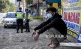 Petugas kepolisian memeriksa identitas pengendara di posko penyekatan larangan mudik di Jalan Nanggeleng, Limbangan, Kabupaten Garut, Ahad (9/5). (FOTO : REPUBLIKA/ABDAN SYAKURA)