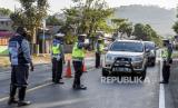 REPUBLIKA.CO.ID, KAB. GARUT -- Petugas gabungan melakukan penyekatan kendaraan dengan plat nomor dari luar Garut di posko penyekatan larangan mudik di Jalan Nanggeleng, Limbangan, Kabupaten Garut, Ahad (9/5). Memasuki hari keempat penerapan larangan mudik Lebaran 2021, petugas gabungan di posko penyekatan larangan mudik Limbangan telah memutarbalikan sedikitnya 150 kendaraan berplat luar kota dari arah Bandung menuju Garut dan Tasikmalaya karena tidak memiliki surat kesehatan serta ijin perjalanan.