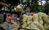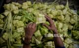 REPUBLIKA.CO.ID, JAKARTA -- Pedagang kulit ketupat berjualan di area trotoar kawasan Pasar Palmerah, Jakarta, Senin (10/5). Menjelang Idulfitri 1442 H pedagang kulit ketupat mulai memadati area trotoar Pasar Palmerah. Menurut pedagang, pada H-3 Idulfitri penjualan kulit ketupat mengalami kenaikan permintaan, harga satu ikat kulit ketupat dibandrol dengan harga Rp15.000 untuk sepuluh buah kulit ketupat.