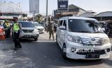 REPUBLIKA.CO.ID, PADALARANG -- Petugas gabungan memutarbalikan kendaraan dengan plat nomor dari luar Bandung di posko penyekatan larangan mudik di gerbang Tol Padalarang, Kabupaten Bandung Barat, Senin (10/5).