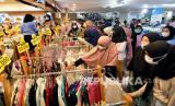 REPUBLIKA.CO.ID, LAMPUNG -- Pengunjung memilih busana di pusat perbelanjaan Simpur Center Bandar Lampung, Lampung, Ahad (9/5). Jelang Idul Fitri 1442 H jumlah pengunjung yang berbelanja di pusat perbelanjaan tersebut meningkat dari hari biasanya dengan tetap menerapkan protokol kesehatan ketat mencegah penyebaran COVID-19.