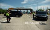 REPUBLIKA.CO.ID, PEJAGAN -- Personel kepolisian memutar balik kendaraan yang keluar di pintu tol Pejagan, Brebes, Jawa Tengah, Minggu (9/5/2021). Menurut Satlantas Polres Brebes memasuki hari keempat pemberlakuan penyekatan pemudik, puluhan kendaraan berplat nomor luar kota dari arah Jakarta menuju Jawa Tengah diputar balik, karena tidak memiliki surat kesehatan dan ijin perjalanan.