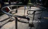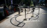Fasilitas Portal S terpasang di jalur pedestrian di Kawasan Jalan Prof Dr Satrio, Kuningan, Jakarta, Senin (10/5). Dinas Bina Marga DKI Jakarta melakukan pemasangan portal S tersebut untuk menghalangi pemotor bandel yang kerap kali menyalahgunakan trotoar untuk berputar balik. Rencananya ada 12 portal S yang akan dipasang di sepanjang trotoar median Jalan Prof Dr Satrio tersebut.Prayogi/Republika (FOTO : Prayogi/Republika.)