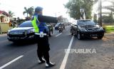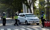 Petugas gabungan menjalankan operasi penyekatan pemudik di Pos Penyekatan Temon, Kulonprogo, Yogyakarta, Senin (10/5). Penyekatan di Temon untuk mengantisipasi pemudik yang masuk Yogyakarta dari arah Purworejo. Setiap mobil dengan plat luar Yogyakarta akan ditepikan dan diperiksa surat bebas Covid-19. (FOTO : Wihdan Hidayat / Republika)