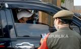 Petugas gabungan memeriksa surat bebas Covid-19 di Pos Penyekatan Temon, Kulonprogo, Yogyakarta, Senin (10/5). Penyekatan di Temon untuk mengantisipasi pemudik yang masuk Yogyakarta dari arah Purworejo. Setiap mobil dengan plat luar Yogyakarta akan ditepikan dan diperiksa surat bebas Covid-19. (FOTO : Wihdan Hidayat / Republika)
