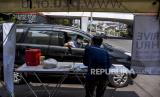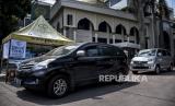 Warga wajib zakat (muzaki) menggunakan kendaraan mengantre untuk membayar zakat fitrah di Masjid Pimpinan Pusat (PP) Persis, Jalan Perintis Kemerdekaan, Kota Bandung, Senin (10/5). Masjid Pimpinan Pusat (PP) Persis membuka layanan pembayaran zakat fitrah menggunakan sistem drive thru atau layanan tanpa turun selama pandemi Covid-19 dengan memberlakukan protokol kesehatan guna mencegah penyebaran Covid-19. Foto: Republika/Abdan Syakura (FOTO : REPUBLIKA/ABDAN SYAKURA)