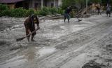 REPUBLIKA.CO.ID, Warga membersihkan jalan yang tertutup lumpur di Desa Beka, Marawola, Kabupaten Sigi, Sulawesi Tengah, Selasa (11/5/2021). Banjir lumpur yang terjadi pada Selasa dini hari itu kembali menerjang desa tersebut, disebabkan oleh hujan di pegunungan dan mengakibatkan longsor serta membawa material ke pemukiman dan menutup jalan.