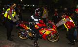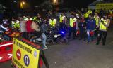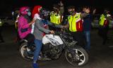 Pemudik sepeda motor terjebak kemacetan saat melintasi posko penyekatan mudik di jalur Pantura Patokbeusi, Subang, Jawa Barat, Selasa (11/5/2021) dini hari. Petugas gabungan memutar balik pemudik yang melintasi jalur pantura Subang pada H-2 jelang Hari Raya Idul Fitri 1442 H.  (FOTO : ANTARA/M Ibnu Chazar)