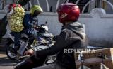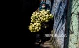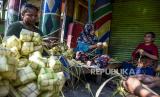 Seorang warga membawa kulit ketupat di Jalan Caringin, Babakan Ciparay, Kota Bandung, Selasa (11/5). Menjelang perayaan Hari Raya Idul Fitri 1442 Hijriah, permintaan kulit ketupat yang dijual dengan harga Rp10 ribu per 10 buahnya tersebut mengalami peningkatan hingga 50 persen dibandingkan Idul Fitri tahun lalu. (FOTO : REPUBLIKA/ABDAN SYAKURA)