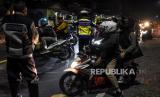Petugas gabungan memeriksa kelengkapan dokumen pengendara di posko penyekatan larangan mudik di Jalan Nanggeleng, Limbangan, Kabupaten Garut, Selasa (11/5). Pada H-2 menjelang Hari Raya Idul Fitri 1442 H, petugas gabungan di posko penyekatan larangan mudik Limbangan memutarbalikan ratusan pemudik sepeda motor dari arah Bandung menuju Garut dan Tasikmalaya karena tidak memiliki surat kesehatan serta ijin perjalanan. g (FOTO : REPUBLIKA/ABDAN SYAKURA)