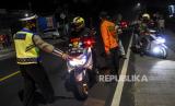 Petugas gabungan memutarbalikan pemudik sepeda motor di posko penyekatan larangan mudik di Jalan Nanggeleng, Limbangan, Kabupaten Garut, Selasa (11/5). Pada H-2 menjelang Hari Raya Idul Fitri 1442 H, petugas gabungan di posko penyekatan larangan mudik Limbangan memutarbalikan ratusan pemudik sepeda motor dari arah Bandung menuju Garut dan Tasikmalaya karena tidak memiliki surat kesehatan serta ijin perjalanan. Foto: Republika/Abdan Syakura (FOTO : REPUBLIKA/ABDAN SYAKURA)