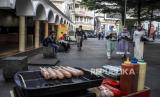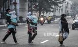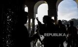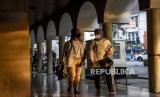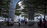 Umat muslim berjalan menuju Masjid Raya Bandung, Jalan Dalem Kaum, Kota Bandung, Kamis (13/5). Masjid Raya Bandung menggelar shalat Idul Fitri 1442 H dengan menerapkan protokol kesehatan seperti menjaga jarak, memakai masker, pengukuran suhu tubuh dan membatasi jumlah jemaah menjadi 30 persen dari kapasitas guna mengurangi resiko penyebaran Covid-19. Foto: Republika/Abdan Syakura (FOTO : REPUBLIKA/ABDAN SYAKURA)