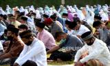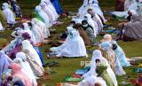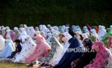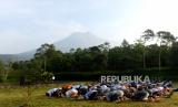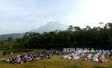 REPUBLIKA.CO.ID, YOGYAKARTA -- Warga Dusun Kalitengah Lor dan Kalitengah Kidul menunaikan shalat Idul Fitri di lapangan Teras Merapi, Srunen, Glagaharjo, Sleman, Yogyakarta, Kamis (13/5).