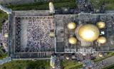 Masjid Dian Al-Mahri atau Masjid Kubah Emas Depok menyelenggarakan Sholat Idul Fitri 1442 Hijriah dengan kuota kapasitas jamaah sebanyak 50 persen dan protokol kesehatan yang ketat pada masa pandemi Covid-19.