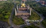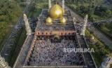 REPUBLIKA.CO.ID, DEPOK -- Sejumlah umat Muslim melaksanakan Sholat Idulfitri 1442 Hijriah di Masjid Dian Al-Mahri, Depok, Jawa Barat Kamis (13/5).