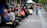 Pedagang kaki lima tertidur saat sore di kawasan Malioboro, Yogyakarta, Kamis (13/5). Pada hari pertama Idul Fitri 1442 H kawasan Malioboro masih sepi pengunjung. Adanya larangan mudik sangat memengaruhi kunjungan ke ikon wisata Yogyakarta. Sepinya pengunjung juga dikeluhkan oleh penjual oleh-oleh dan andong wisata. (FOTO : Wihdan Hidayat / Republika)