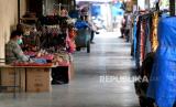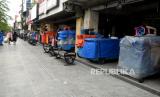 Lapak pedagang kaki lima banyak tutup saat Lebaran Idul Fitri di kawasan Malioboro, Yogyakarta, Kamis (13/5). Pada hari pertama Idul Fitri 1442 H kawasan Malioboro masih sepi pengunjung. Adanya larangan mudik sangat memengaruhi kunjungan ke ikon wisata Yogyakarta. Sepinya pengunjung juga dikeluhkan oleh penjual oleh-oleh dan andong wisata. (FOTO : Wihdan Hidayat / Republika)