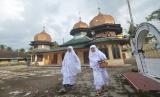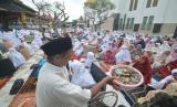Seorang jamaah mengumpulkan infak sebelum pelaksanaan shalat Idul Fitri Tarekat Syattariyah di kawasan kompleks Makam Syekh Burhanuddin, Ulakan, Kabupaten Padangpariaman, Sumatera Barat, Jumat (14/5/2021). (FOTO : ANTARA/Iggoy el Fitra)
