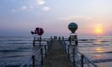 Wisatawan berswafoto sambil menikmati matahari terbit di Pantai Tanjung Pakis, Desa Pakis Jaya, Karawang, Jawa Barat, Sabtu (15/5/2021). Menteri Pariwisata dan Ekonomi Kreatif Sandiaga Uno mengingatkan kepada pengelola tempat wisata di berbagai daerah untuk tetap menjalankan protokol kesehatan ketat agar angka kasus COVID-19 tidak mengalami peningkatan setelah libur Lebaran. (FOTO : ANTARA/M Ibnu Chazar)