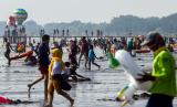 REPUBLIKA.CO.ID, KARAWANG -- Wisatawan mengunjungi Pantai Tanjung Pakis di Desa Pakis Jaya, Karawang, Jawa Barat, Sabtu (15/5). Menteri Pariwisata dan Ekonomi Kreatif Sandiaga Uno mengingatkan kepada pengelola tempat wisata di berbagai daerah untuk tetap menjalankan protokol kesehatan ketat agar angka kasus COVID-19 tidak mengalami peningkatan setelah libur Lebaran.