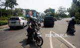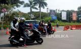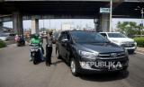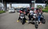 Sejumlah warga yang akan berwisata berputar balik di Kawasan pintu masuk Taman Impian Jaya Ancol, Jakarta, Sabtu (15/5). Manajemen Taman Impian Jaya Ancol menghentikan sementara operasional kawasannya baik area rekreasi dan wisata Pantai Ancol pada hari ketiga libur Lebaran 1442 Hijriah yakni Sabtu (15/5) untuk dilakukan penyemprotan disinfektan dan evaluasi penguatan protokol kesehatan. Prayogi/Republika. (FOTO : Prayogi/Republika.)