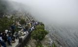 Warga berwisata di area Kawah Ratu Taman Wisata Alam Gunung Tangkuban Parahu, Subang, Jawa Barat, Sabtu (15/5/2021). Wisatawan dari sejumlah daerah memadati kawasan wisata alam Tangkuban Parahu untuk mengisi libur hari ketiga Idul Fitri 1442 Hijriah. (FOTO : ANTARA/Novrian Arbi)