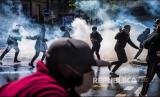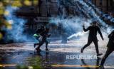 Polisi menembakkan gas air mata untuk membubarkan ribuan massa yang turun ke jalan Kota Paris untuk menggelar aksi unjuk rasa mendukung Palestina, Sabtu (15/5) waktu setempat. Sebelumnya polisi telah melarang aksi demonstrasi mendukung Palestina. (FOTO : EPA-EFE/Christophe Petit Tesson)