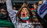 REPUBLIKA.CO.ID, PARIS -- Ribuan massa turun ke jalan Kota Paris untuk menggelar aksi unjuk rasa mendukung Palestina, Sabtu (15/5) waktu setempat. Sebelumnya polisi telah melarang aksi demonstrasi mendukung Palestina.