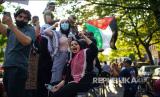 REPUBLIKA.CO.ID, NEW YORK -- Warga New York turun ke jalan menggelar aksi dukungan untuk rakyat Palestina dari agresi Israel, New York, Sabtu (15/5) waktu setempat.
