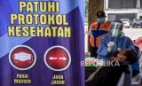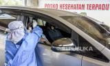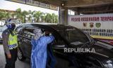 Tenaga kesehatan melakukan tes cepat antigen ke pengendara di Rest Area KM 149 B Tol Purbaleunyi, Kabupaten Bandung, Senin (17/5). Penyekatan dan pemeriksaan tersebut dilakukan terhadap pengendara berplat nomor luar Bandung yang akan menuju Bandung dan Jabodetabek sebagai upaya meminimalisir penyebaran Covid-19 saat arus balik Lebaran Idul Fitri 1442 H. Foto: Republika/Abdan Syakura (FOTO : REPUBLIKA/ABDAN SYAKURA)