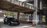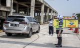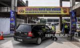 REPUBLIKA.CO.ID,BANDUNG -- Petugas gabungan melakukan penyekatan kendaraan berplat nomor luar Bandung di Rest Area KM 149 B Tol Purbaleunyi, Kabupaten Bandung, Senin (17/5).