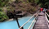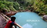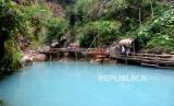 Salah satu titik di Air Terjun Kedung Pedut, Kulonprogo, Yogyakarta, Senin (17/5). Air Terjun Kedung Pedut menjadi salah satu destinasi wisata favorit di perbukitan Menoreh, Kulonprogo. Konsep Ekowisata menjadi daya tarik di sini. Dengan tarif masuk Rp 11 ribu pengunjung bisa menikmati air Terjun dan bisa bermain air dengan tingkat kedalaman. (FOTO : Wihdan Hidayat / Republika)