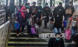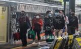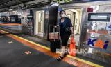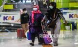 REPUBLIKA.CO.ID, JAKARTA -- Penumpang kereta Argo Lawu berjalan saat tiba di Stasiun Gambir, Jakarta, Senin (17/5/2021). Berdasarkan data PT KAI pada hari Senin (17/5) sebanyak 2.100 penumpang kereta api jarak jauh (KAJJ) akan tiba di Jakarta, di mana jumlah tersebut akan terbagi dua stasiun yaitu Stasiun Pasar Senen sekitar 1200 penumpang dan Stasiun Gambir 900 penumpang. ANTARA FOTO/Muhammad Adimaja/wsj.A
