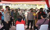 Puluhan pemudik arus balik lebaran 2021 di kawasan tersebut menjalani test covid..