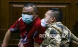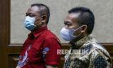 REPUBLIKA.CO.ID, JAKARTA -- Terdakwa kasus korupsi Bantuan Sosial (Bansos) COVID-19 Matheus Joko Santoso dan Adi Wahyono berbincang sebelum mengikuti sidang lanjutan di Pengadilan Tipikor, Jakarta, Senin (17/05/2021). Sidang tersebut beragenda mendengarkan keterangan saksi.
