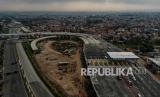 REPUBLIKA.CO.ID, BANDUNG -- Foto udara kendaraan melintas saat uji coba lintasan proyek Simpang Susun Cileunyi, Kabupaten Bandung, Jawa Barat, Senin (17/5/2021). Jasa Marga melakukan uji coba lintasan proyek Simpang Susun Cileunyi yang nantinya akan menghubungkan Jalan Tol Purbaleunyi dan Jalan Tol Cisumdawu.