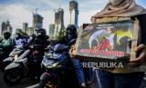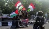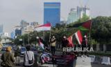 REPUBLIKA.CO.ID, Sejumlah anggota komunitas Bagi Indonesia melakukan aksi penggalangan dana di kawasan Karet, Jakarta, Selasa (18/5). Aksi penggalangan dana yang akan disumbangkan kepada masyarakat Palestina tersebut sebagai bentuk dukungan untuk kebebasan Palestina dan perlawanan kepada zionis Israel.