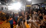 REPUBLIKA.CO.ID, YOGYAKARTA -- Penumpang naik gerbong kereta api jarak jauh di Stasiun Yogyakarta, Selasa (18/5). Mulai Selasa (18/5) KAI Daop VI mengoperasikan kembali perjalanan kereta api reguler usai pembatasan larangan mudik. Dan untuk perjalanan kereta api reguler sudah beroperasi normal dan tetap menggunakan surat bebas Covid-19 dan menggunakan protokol kesehatan.