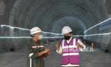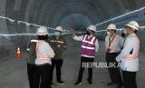 REPUBLIKA.CO.ID, BEKASI -- Presiden Joko Widodo (kanan) berbincang dengan perwakilan PT KCIC saat meninjau pembangunan tunnel proyek kereta cepat di Bekasi, Jawa Barat, Selasa (18/5).