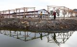 Pekerja menyelesaikan tempat berjualan tambahan untuk pedagang di pasar rakyat Al Mahirah Lamdingin, Banda Aceh, Aceh, Kamis (20/5/2021). Pasar rakyat Al Mahirah Lamdingin yang mampu menampung 789 pedagang tersebut dibangun untuk relokasi padagang dari pasar tradisional Peunayong pada 24 Mei 2021 nanti. (FOTO : ANTARA/Irwansyah Putra)