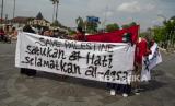 REPUBLIKA.CO.ID, YOGYAKARTA -- Anggota Aliansi Masyarakat Jogja menggelar unjuk rasa dukungan untuk Palestina di Titik Nol Yogyakarta, Kamis (20/5).