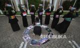 REPUBLIKA.CO.ID, SURABAYA -- Mahasiswa Fakultas Agama Islam Universitas Muhammadiyah Surabaya membentangkan poster saat menggelar aksi teatrikal bertajuk Teater Ibu Bumi Palestina di Surabaya, Jawa Timur, Kamis (20/5/2021).