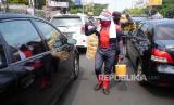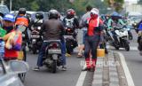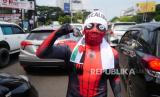 Seorang pengamen costum player (cosplay) mengenakan syal bertema Palestina di simpang Jl Buah Batu - Soekarno Hatta Bandung ,Kamis (20/5). Kepada setiap pengendara kendaraan yang berhenti dia menyerukan untuk mendoakan untuk Warga Palestina yang tengah digempur militer Israel. (FOTO : Republika/Yogi Ardhi)