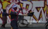 REPUBLIKA.CO.ID, BANDUNG -- Seorang pengamen costum player (cosplay) mengenakan syal bertema Palestina di simpang Jl Buah Batu - Soekarno Hatta Bandung ,Kamis (20/5). Kepada setiap pengendara kendaraan yang berhenti dia menyerukan pengemudi untuk mendoakan untuk warga Palestina yang tengah digempur militer Israel.
