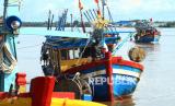 Sejumlah kapal ikan ilegal berbendera Vietnam digiring menuju Stasiun Pengawasan Sumber Daya Kelautan dan Perikanan (PSDKP) Pontianak di Kabupaten Kubu Raya, Kalimantan Barat, Kamis (20/5/2021). Dalam Operasi Lebaran yang dilaksanakan pada liburan Idul Fitri 2021, Kapal Pengawas Hiu Macan 01 Kementerian Kelautan dan Perikanan (KKP) yang dinahkodai Kapten Samson menangkap enam kapal ikan asing berbendera Vietnam beserta 36 Anak Buah Kapal (ABK) saat sedang menjaring cumi-cumi secara ilegal di Laut Natuna Utara pada Minggu (16/5/2021). (FOTO : Antara/Jessica Helena Wuysang)