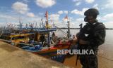 Seorang petugas mengawasi kapal ikan ilegal berbendera Vietnam di Dermaga Stasiun Pengawasan Sumber Daya Kelautan dan Perikanan (PSDKP) Pontianak di Kabupaten Kubu Raya, Kalimantan Barat, Kamis (20/5/2021). Dalam Operasi Lebaran yang dilaksanakan pada liburan Idul Fitri 2021, Kapal Pengawas Hiu Macan 01 Kementerian Kelautan dan Perikanan (KKP) yang dinahkodai Kapten Samson menangkap enam kapal ikan asing berbendera Vietnam beserta 36 Anak Buah Kapal (ABK) saat sedang menjaring cumi-cumi secara ilegal di Laut Natuna Utara pada Minggu (16/5/2021). (FOTO : Antara/Jessica Helena Wuysang)