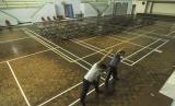 REPUBLIKA.CO.ID, JAKARTA -- Petugas berolahraga saat menunggu kedatangan warga yang akan isolasi di GOR Cipayung, Jakarta, Jumat (21/5/2021).