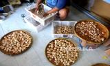 Karyawan menyortir bakpia di industri rumahan Bakpia Jago, Patok, Yogyakarta, Jumat (21/5). Pascalebaran Idul Fitri pesanan bakpia mulai naik kembali. Pencabutan pelarangan mudik menjadi andil naiknya pengunjung ke Yogyakarta. Sehingga memengaruhi melonjaknya pesanan bakpia. Setiap hari di sini memroduksi bakpia sekitar 8 ribu biji. (FOTO : Wihdan Hidayat / Republika)