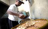 Karyawan memanggang bakpia di industri rumahan Bakpia Jago, Patok, Yogyakarta, Jumat (21/5). Pascalebaran Idul Fitri pesanan bakpia mulai naik kembali. Pencabutan pelarangan mudik menjadi andil naiknya pengunjung ke Yogyakarta. Sehingga memengaruhi melonjaknya pesanan bakpia. Setiap hari di sini memroduksi bakpia sekitar 8 ribu biji. (FOTO : Wihdan Hidayat / Republika)